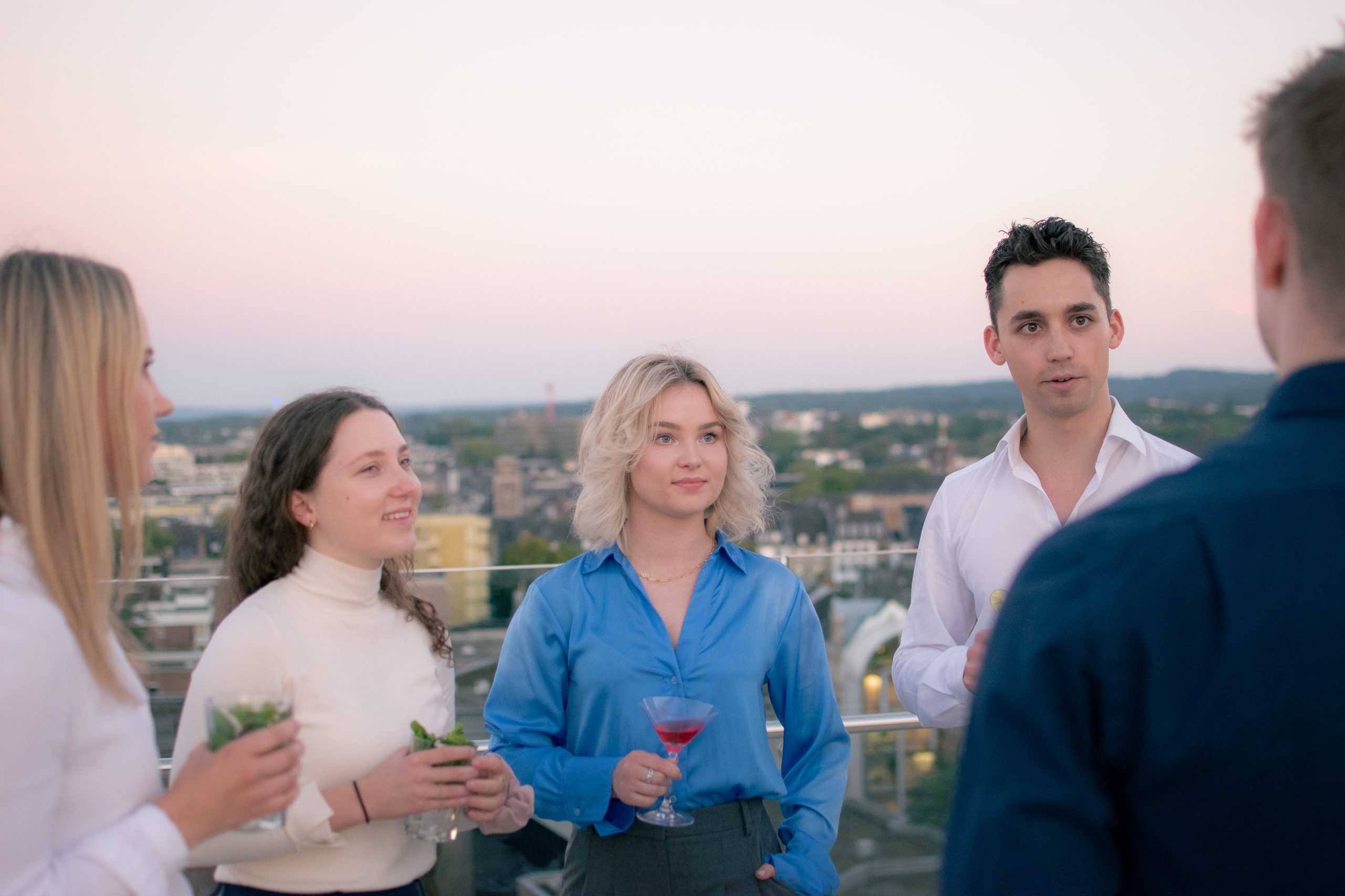 Feiere mit uns! Wir lassen den Bewerbungsprozess in lockerer Atmosphäre ausklingen und stoßen gemeinsam auf die neuen Mitglieder an.